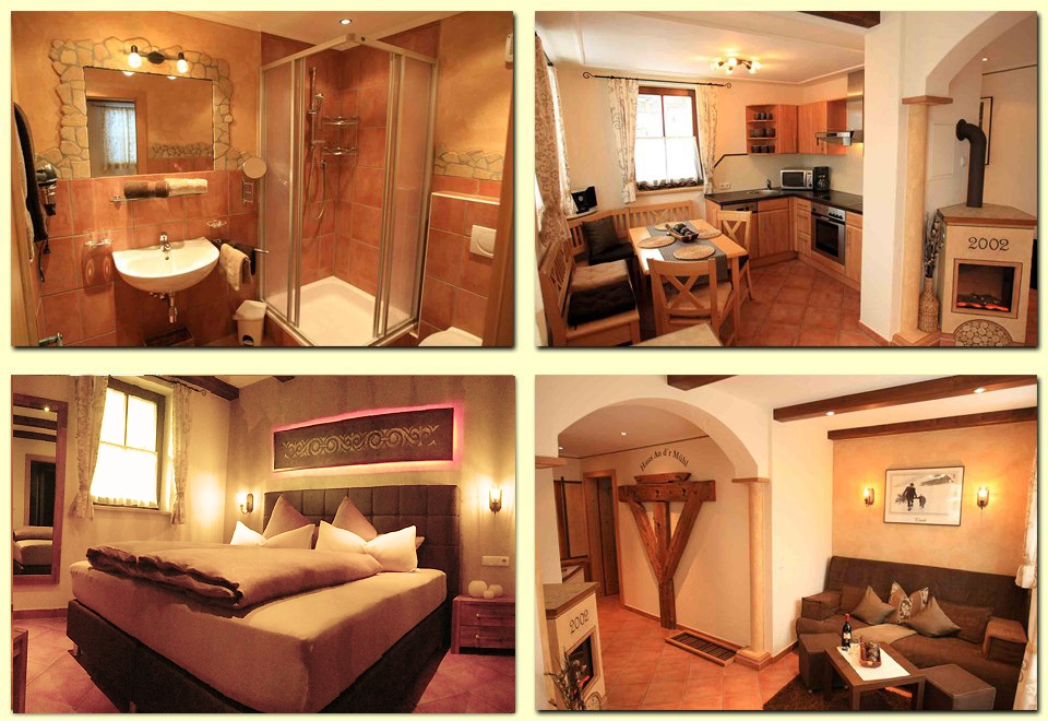- komplett ausgestattete Küche (4-Platten-Ceranherd, Backrohr, Mikrowelle, Geschirrspüler, Kühlschrank, Dunstabzug, Kaffeemaschine, ausreichend Besteck, Geschirr und Gläser,...)